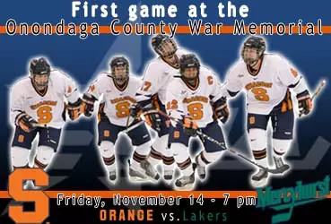 SYRACUSE, N.Y. - The Orange continues to create history this weekend when Syracuse entertains league-opponent, Mercyhurst College, at the Onondaga County War Memorial on Friday night, November 14, at 7 p.m. Friday's bout will be the first time the War Memorial will host a Syracuse collegiate ice hockey game. Following the first game against the Lakers, Syracuse returns to Tennity Ice Pavilion to wrap up the two-game conference stint against Mercyhurst at 2 p.m.