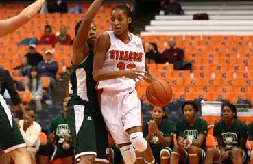 Junior forward Nicole Michael led the way for Syracuse, scoring a season-high 23 points behind 9-of-18 from the field. Sophomore guard Erica Morrow accounted for 19 points, extending her streak of scoring at least 15 points to four games. Defensively, Morrow tied a career-high by recording six steals. Senior Chandrea Jones grabbed a game-high 11 boards and tallied six points. Jones also matched a career-best with five swipes. Sophomore guard Tasha Harris scored six points and logged a team-best five assists while junior forward Juanita Ward put together six points and six rebounds. Sophomore guard Marisa Gobuty earned her first start of the season and drained her third 3-pointer of the season.