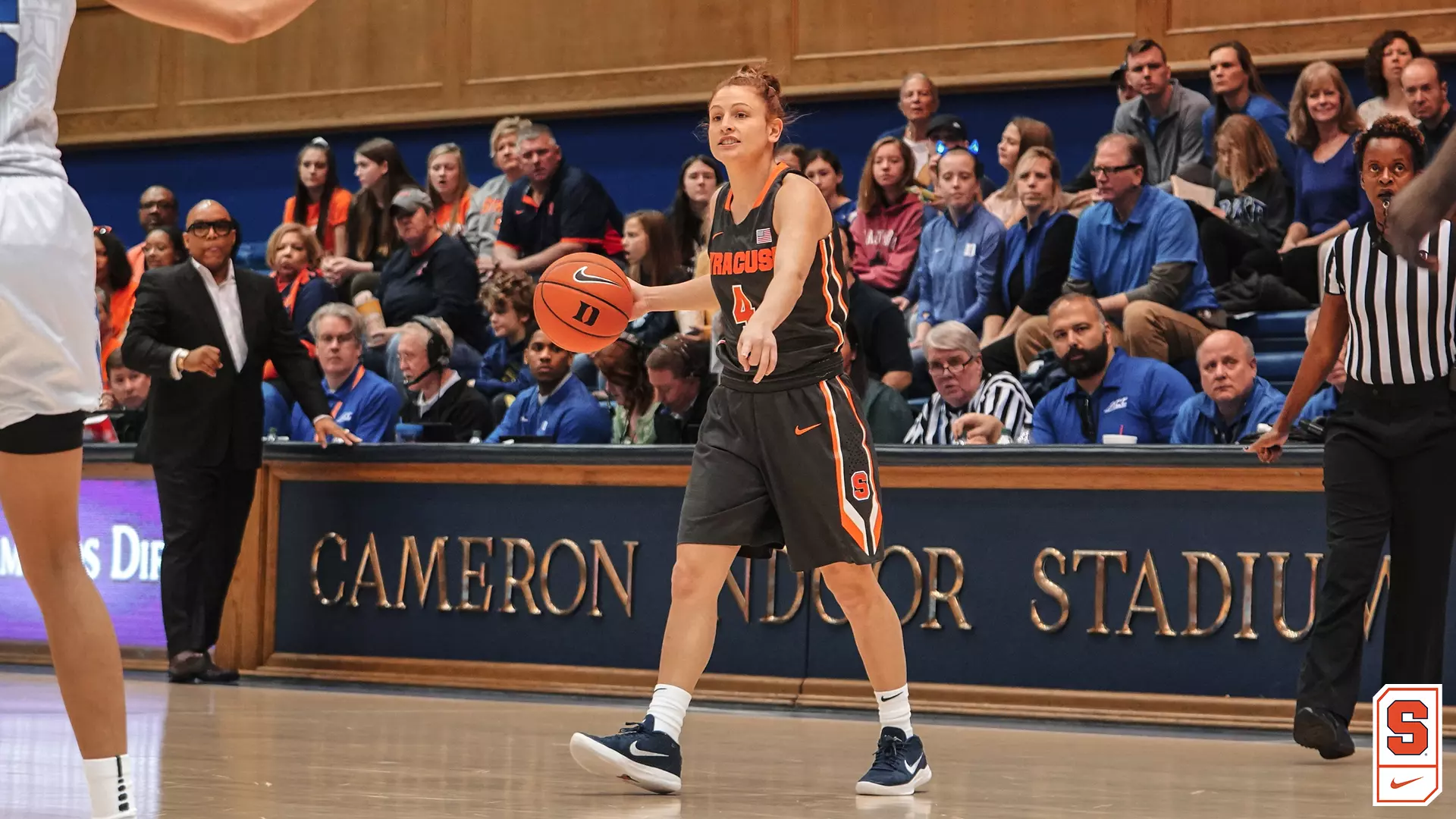 Durham, N.C. – Syracuse University's 13th-ranked women's basketball team faces Duke (9-9, 1-5 ACC) inside Cameron Indoor Stadium at 1 p.m. Sunday. The Orange look to snap a two-game Atlantic Coast Conference skid while the Blue Devils search for their second in win conference play. Fans can watch live on Regional Sports Networks, including YES Network in Syracuse, with Tom Werme and LaChina Robinson on the call.