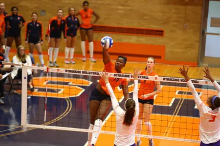 Senior Year (2018): Led the ACC with a .425 hitting percentage ... Selected to 2018 UConn Invitational, Marquette Invitational and Cyclone Classic All-Tournament Teams ... Tallied five kills, two digs and six blocks against New Hampshire at the UConn Invitational ... Produced 10 kills, three digs and seven total blocks at UConn ... Totaled six kills, six digs and seven blocks against BYU at the Marquette Tournament ... Recorded 11 kills and five blocks against USC ... Closed out the Marquette Tournament with 10 kills, six blocks and four digs against Marquette ... Totaled 11 kills, six blocks and three digs against Wyoming at the Iowa State Tournament ... Produced 12 kills and three digs against Iowa at the Iowa State Tournament ... Recorded 15 kills and three blocks against Iowa State ... Tallied eight kills and five blocks against Georgia Tech ... Produced eight kills and five blocks against Clemson ... Recorded a season-high nine digs along with 13 kills and five blocks at Wake Forest ... Produced season-high 10 blocks and five kills at Pittsburgh ... Recorded 15 kills, seven blocks and two digs against Miami ... Tallied a season-high 16 kills against Florida State ... Totaled eight kills and eight blocks against NC State ... Had eight kills and four blocks in Syracuse's win over No. 22 Louisville ... Had seven blocks against Boston College ... Recorded 11 kills, three blocks and four digs at Virginia Tech ... Had eight kills at Georgia Tech followed by seven against Virginia Tech ... Produced 13 kills, eight blocks and four digs against Wake Forest ... Totaled 10 kills and five blocks against Yale in the first round of the NCAA Tournament ... Had six kills at Penn State in the second round of the NCAA Tournament.