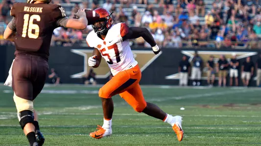 Sophomore Year (2018): Played in all 13 games, starting two ... Notched 21 tackles (13 solo) ...Third on the team with five sacks … Fifth on the team with six tackles for loss … Made a career-high four tackles against Wagner (9/8), including one sack, and forced the first fumble of his career ... Registered a sack against Florida State (9/15) … Logged two tackles at Clemson (9/29) … Credited with half a sack at Pittsburgh (10/6) … Made two solo tackles against North Carolina (10/20) … Collected two tackles, 1.5 sacks, and recovered the first fumble of his career against Louisville (11/9) … Had a sack in his first career start at Boston College (11/24) … Started the Camping World Bowl against West Virginia (12/28) and equaled his personal best with four tackles, including one for a loss ... ACC Honor Roll selection … Named to the SU Athletic Director’s Honor Roll both semesters.