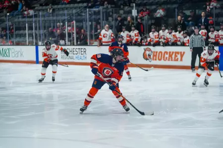 2024-25: AHA Rookie of the Week (Week 2) … played in 37 games during her rookie season as a forward … made her collegiate debut against Stonehill (Oct. 4) … notched eight points on an even four goals and four assists … potted her first college goal against Stonehill (Oct. 5) as well as her first career assist … added another two-point effort at Mercyhurst (Feb. 15) in a 4-2 road win … blocked 15 shots in her freshman campaign, including a season-best three at No. 8 St. Lawrence (Oct. 8) … won 138 faceoffs, including 10 in her college debut against Stonehill … won nine at Robert Morris (Feb. 8) in an AHA game ... AHA All-Academic team. Before Syracuse: Played for U18 AAA Red Deer Sutter Fund Chiefs Alberta (3 years) and U15 AA PCFAC Storm (2 years) ... Competed in Canada Winter Games with U18 Female Team Alberta … Competed in Canada National Championship with U18 Female Team Alberta ... Team MVP- Red Deer Sutter Fund Chiefs ... Rookie of the year- Red Deer Sutter Fund Chiefs.