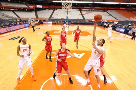 Recorded seven assists and notched six points at #2 Notre Dame (2/26) … Scored five points while recording six assists at USF (2/23) … Led SU by scoring a season-high 17 points against Rutgers (2/19) … Dished out six assists and grabbed two rebounds against Pittsburgh (2/16) … Hit three foul shots and recorded four assists and four steals at Georgetown (2/12) … Scored five points while dishing out five assists at Cincinnati (2/5) … Tallied five points and a team-high five steals against Providence (2/2) … Recorded five points and a team-high four assists against Seton Hall (1/30) … Tallied five defensive rebounds and had five assists at St. John’s (1/23) … Led the Orange in assists (4) and steals (3) while notching 10 points at #3/2 UConn (1/19) … Recorded five points and seven assists against DePaul (1/15) ... Had 12 points and a team-high six assists against Georgetown (1/12) … Notched a season-high 15 points, shooting 5-for-8 from behind the arc at Marquette (1/5) … Recorded four points and six assists against Boise State (12/30) … Shot 3-for-3 from behind the arc for nine points while recording three assists against Loyola (12/8/12) … Recorded her first career double-double, notching 11 points and recording a career-high 10 assists at Temple (12/2) … Shot 5-10 from the field, which included two 3-pointers, for 14 points at Dartmouth (11/29) … Went 4-4 from the foul line and hit a 3-pointer for a total of seven points at St. Joseph’s (11/20) … Tallied five points, including one 3-pointer, and added five rebounds at Maine (11/13) … Recorded nine assists against FDU and tallied three points (11/11).