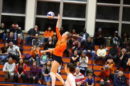 Junior Year (2014): Against Delaware State had a .444 hitting percentage with 10 kills on 18 attempts, one ace and two block assists ... Led the team in digs with 17 and totaled 10 kills and six blocks versus Temple ... Tallied 12 kills and four blocks against Niagara ... At DePaul recorded 15 kills, 11 digs and three blocks ... Totaled 13 kills, two aces, two blocks and a season-high 17 digs for the second time in 2014 against Illinois-Chicago ... At Chicago State, had a .368 hitting percentage with nine kills on 19 attempts and 11 digs ... Recorded seven kills and nine digs against Ohio State ... Recorded four kills and six digs against Xavier ... Against Ohio, had six kills and 14 digs ... Posted 14 kills, seven digs and season best eight block assists against Albany ... Tallied 18 kills, a single game team-high seven service aces, 15 digs and six block assists against Colgate ... Had a stand-out match on offense with 20 kills and two service aces against Cornell ... Recorded 10 kills, three blocks and two block assists against No. 12 North Carolina ... Posted nine digs and seven kills against Notre Dame ... Tallied one ace, seven digs and eight kills against Boston College ... Recorded seven blocks and four kills against Pittsburgh ... Tallied 14 kills and 11 digs against Wake Forest ... Against Georgia Tech, recorded nine kills to go along with 13 digs ... Posted 13 digs, two assists and three blocks against Louisville ... Racked up eight kills and six blocks against Pittsburgh ... Against Clemson, recorded four spikes, 11 kills, and six digs ... Against Boston College, recorded four spikes, 12 kills, and 12 digs ... Earned a .625 hitting percentage with five kills on eight attempts against Miami ... Tallied seven kills and 10 digs against Virginia.
